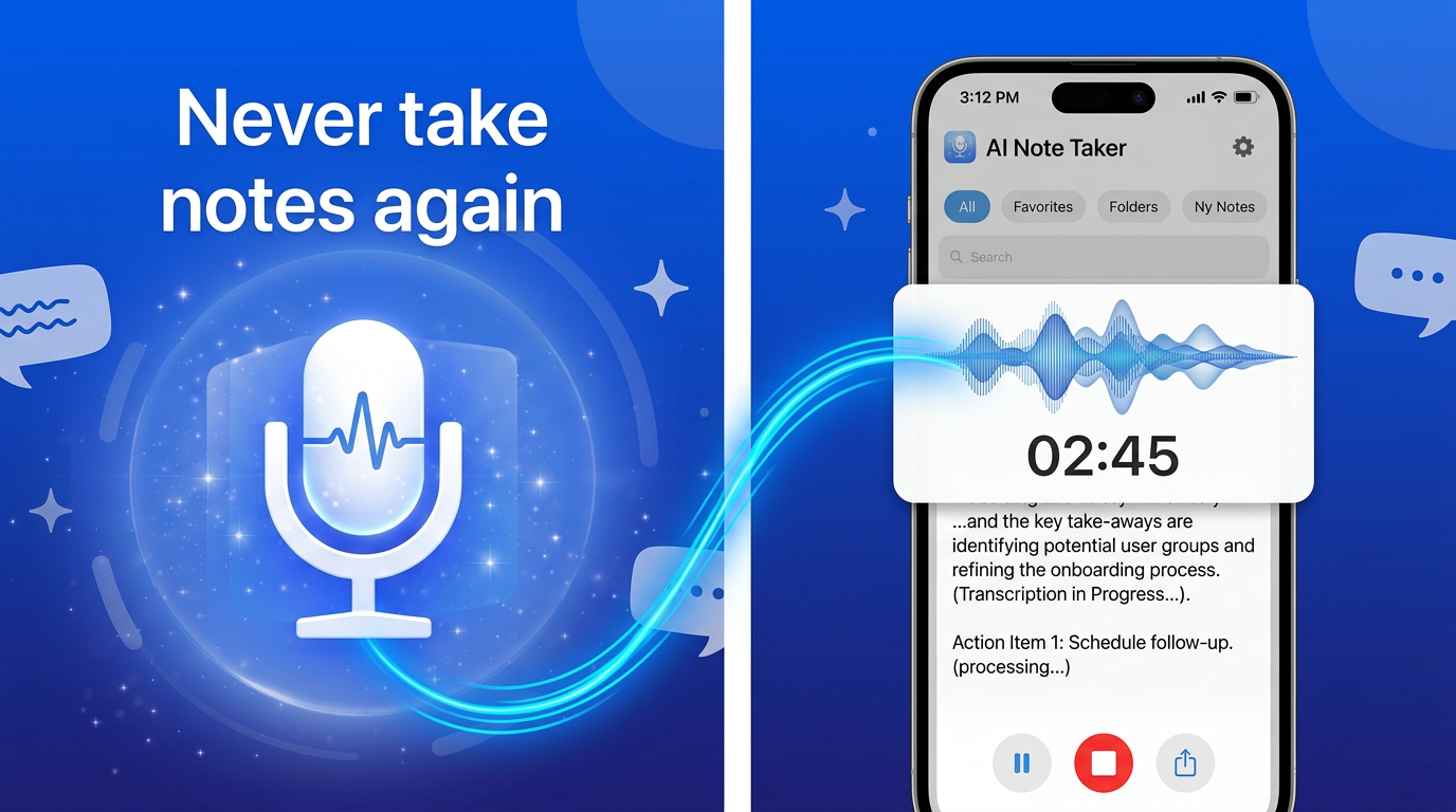 That is exactly where AI Note Taker: Meeting Recorder makes a strong impression. Based on its App Store positioning, the app is built to help users capture audio in one tap, convert speech to text, generate concise AI summaries, and interact with recordings through follow-up questions.